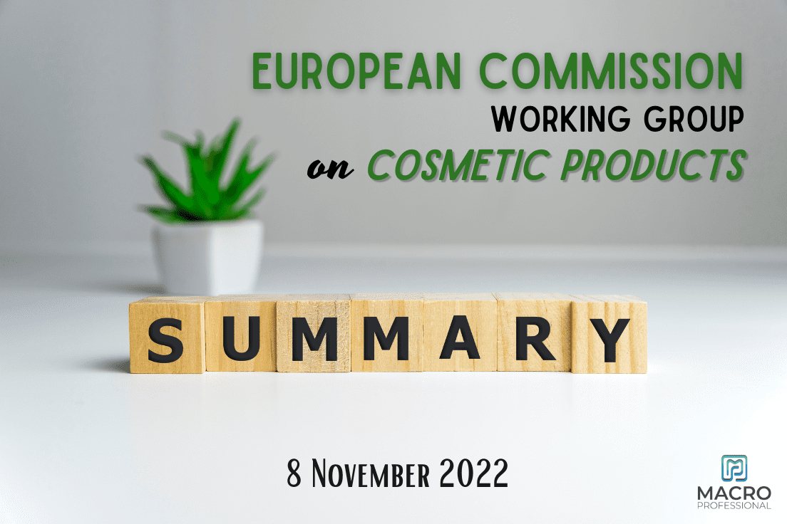 Avrupa Komisyonu Kozmetik ürünler çalışma grubu 8 Kasım 2022 tarihinde kozmetik ürün bileşenleri ile ilgili olarak yayınlacak Omnibus’lar, (EC) 1223/2009 Sayılı Avrupa Birliği Kozmetik Yönetmeliği’nde değişiklikler, Endokrin Bozucu bileşenler ile ilgili SCCS değerlendirmeleri, Nanomateryaller gibi birçok konuda toplantı yapmıştır. Bu haberimizde yapılan toplantıya ait rapor özetini bulabilirsiniz.