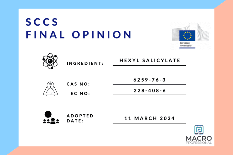 Tüketici Güvenliği Bilimsel Komitesi (SCCS), Hexyl Salicylate hakkındaki nihai görüşünü 28 Şubat...