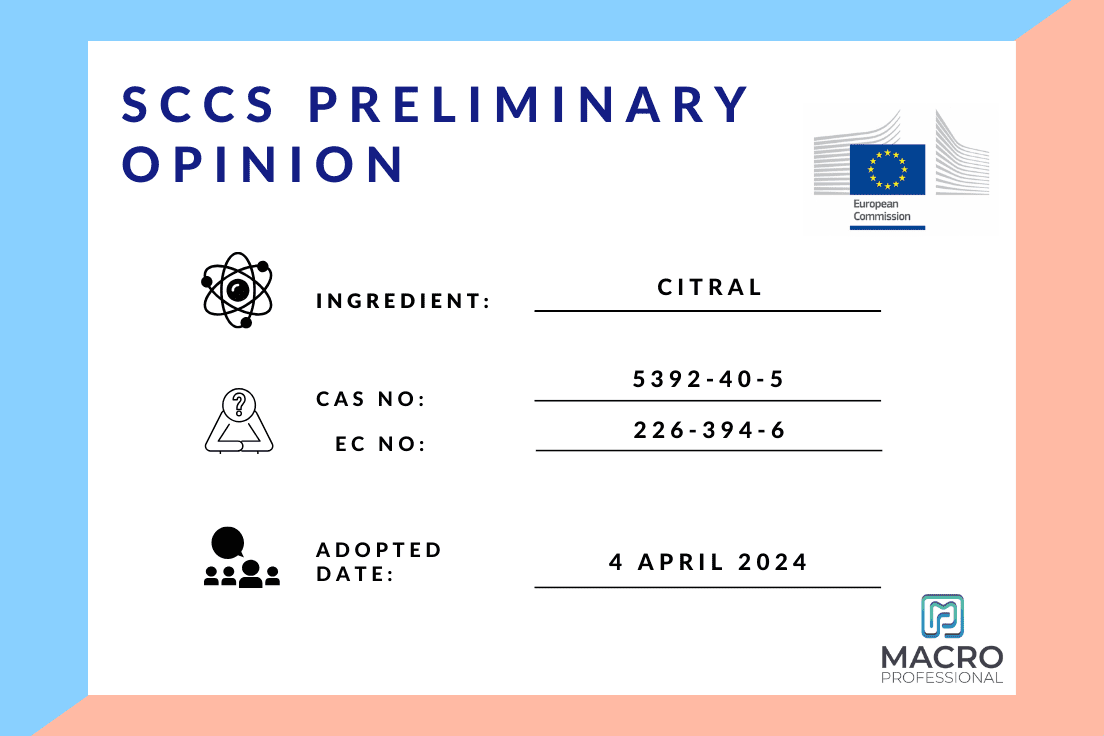 4 Nisan 2024’te SCCS, cilt hassasiyetinin son noktasına ilişkin koku bileşeni Citral hakkında ön SCCS görüşünü yayınlamıştır.