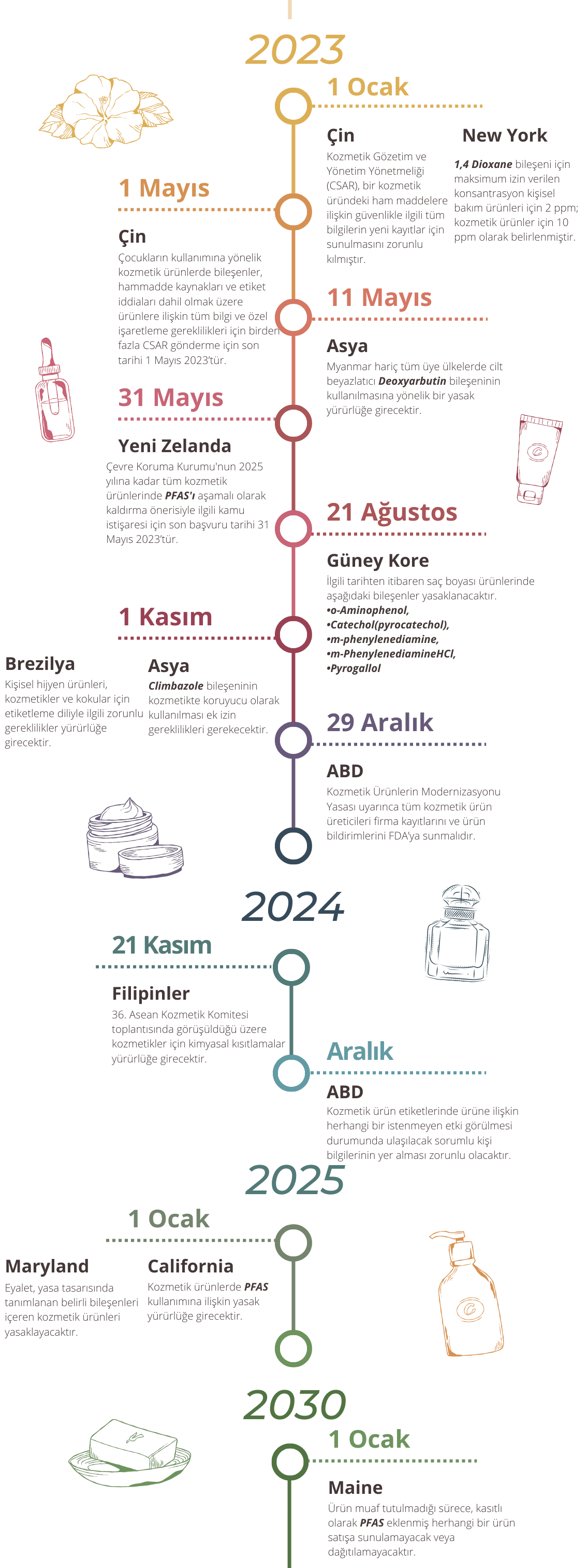 Bugüne kadar Türkiye, Avrupa Birliği ve Birleşik Krallık’taki değişim ve gelişmeleri yazılarımızda sizlerle paylaştık. Aşağıdaki infografikte ise Dünya çapında kozmetik ve kişisel bakım ürünleri için yaşanacak gelişmeleri bulabilirsiniz.