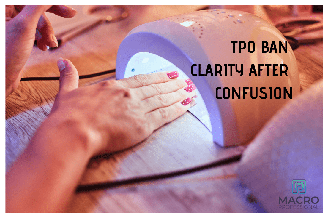 - Profesyonel Kullanım: Tırnak teknisyenleri, önceden satın alınmış olsa bile, salonlarda TPO içeren jelleri kullanamaz. Tüketiciler mevcut ürünleri özel kullanımda sürdürebilir, ancak önerilmez.