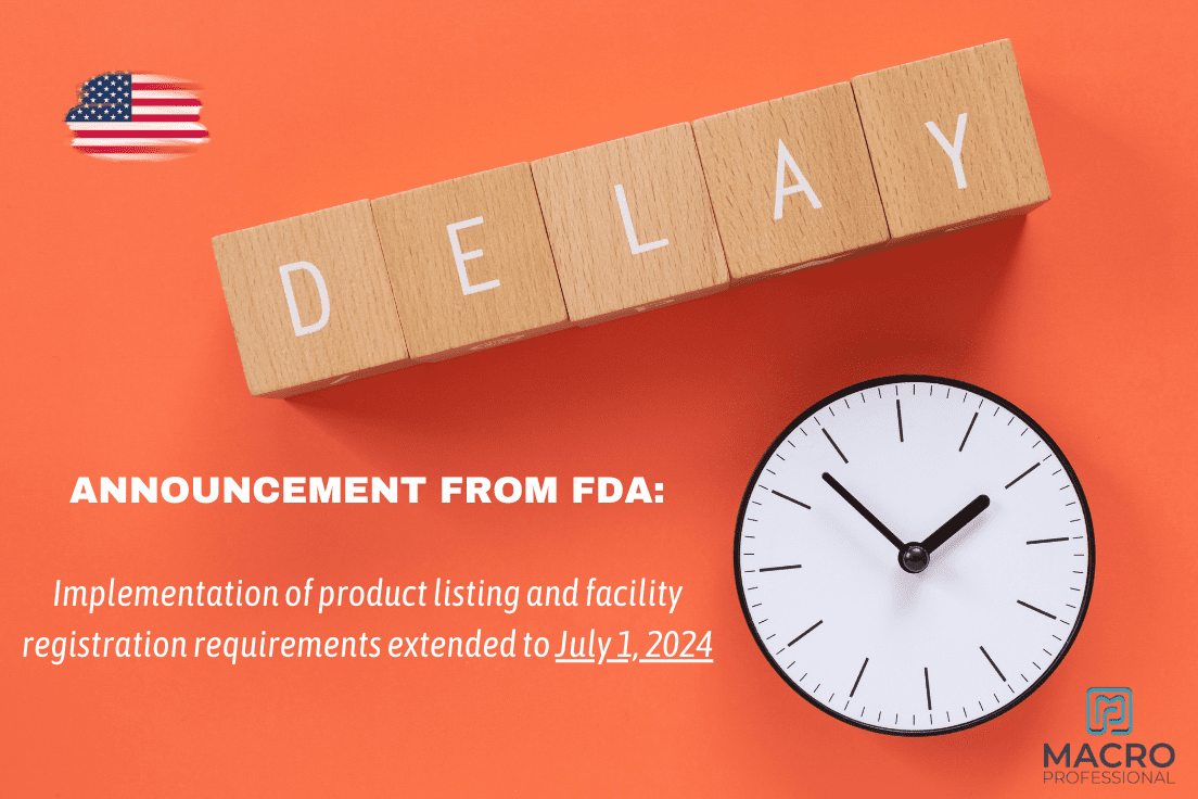 FDA, ürün listeleme ve tesis kayıt gerekliliklerinin uygulanmasında 29 Aralık 2023’ten 1 Temmuz 2024’e kadar ertelediğini duyurmuştur.