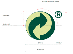 “Yeşil Nokta” ticari markası, dikey bir eksen etrafında birbirine dolanmış iki ok içeren bir dairedir. Merkez eksen, ambalaj üzerindeki yazıya göre dikey olmalıdır. Ayrıca “Yeşil Nokta” sembolünün tescilli bir ticari marka olduğunu gösteren “®” sembolünü de içermelidir. Sembol, Chalet yazı tipi ailesinden bir karakterdir: kullanılan yazı tipi Chalet London Nineteen Sixty’dir. Çemberin çapı “Yeşil Nokta” yarıçapının yarısıdır. “Yeşil Nokta” ile “®” sembolü arasındaki boşluk, “Yeşil Nokta” yarıçapının beşte birine eşittir. “Yeşil Nokta” ile bağlantılı olarak “®” kullanılması şiddetle tavsiye edilir, ancak zorunlu değildir.
