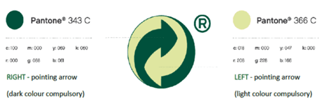 Sağa bakan ok koyu yeşildir – Pantone 343C.