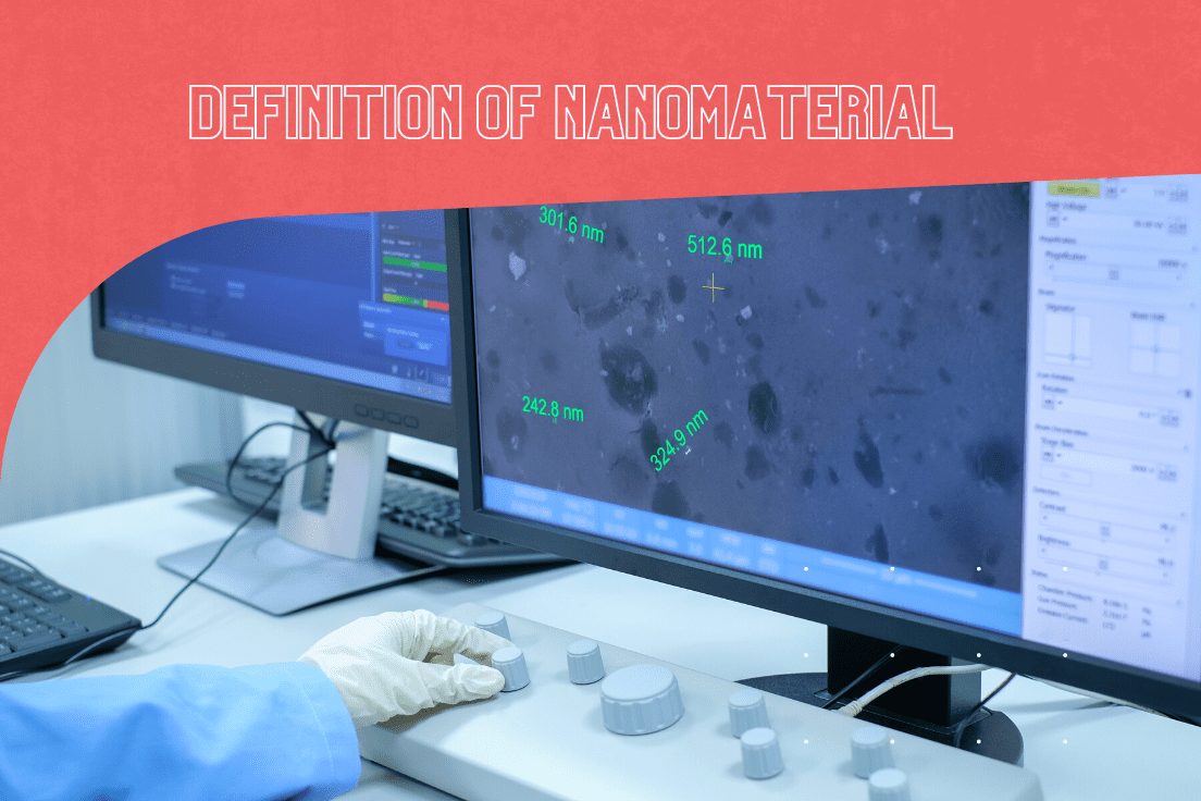 ‘Nanomalzeme’, kendi başlarına veya agregalar veya aglomeralarda tanımlanabilir bileşen partiküller olarak bulunan katı partiküllerden oluşan ve sayı bazlı boyut dağılımında bu partiküllerin %50 veya daha fazlasının karşıladığı doğal, tesadüfi veya üretilmiş bir malzeme anlamına gelir. aşağıdaki koşullardan en az biri: