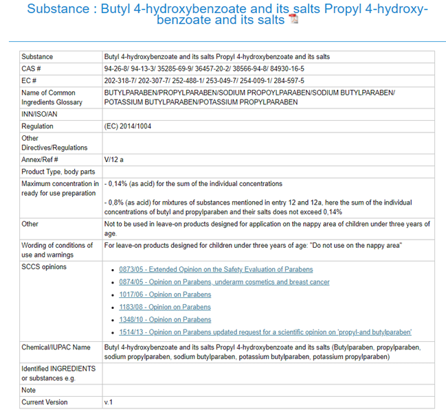 SCCS’nin Propylparaben için potansiyel endokrin bozucu özelliklerle ilgili endişeleri göz önünde bulundurarak değerlendirme yaptığı son görüşü SCCS/1623/20 yayınlanmıştır. Bunun sonucu olarak; Propylparaben; COSING veri tabanında yeni kısıtlamaları ile EK-V /12-a da yerini almıştır.