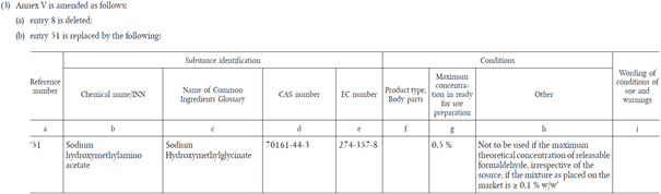 Avrupa Parlamentosu ve Konseyi’nin (EC) 1223/2009 Sayılı Tüzüğü’nün II, III ve V. Eklerinde kanserojen, mutajenik veya üreme için toksik olarak sınıflandırılan belirli maddelerin kozmetik ürünlerinde kullanımına ilişkin değişiklik yapılmıştır.