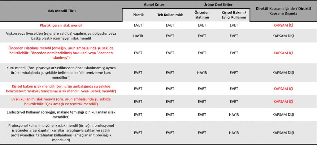 Direktifin Kapsadığı Islak Mendil Kategorileri ve Kapsam Kriterleri