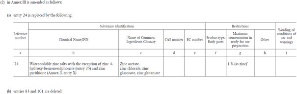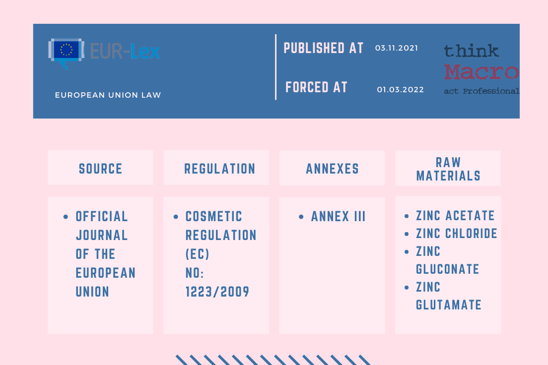 – Ek III’te ‘’ZINC ACETATE, ZINC CHLORIDE, ZINC GLUCONATE, ZINC GLUTAMATE’’ dir.